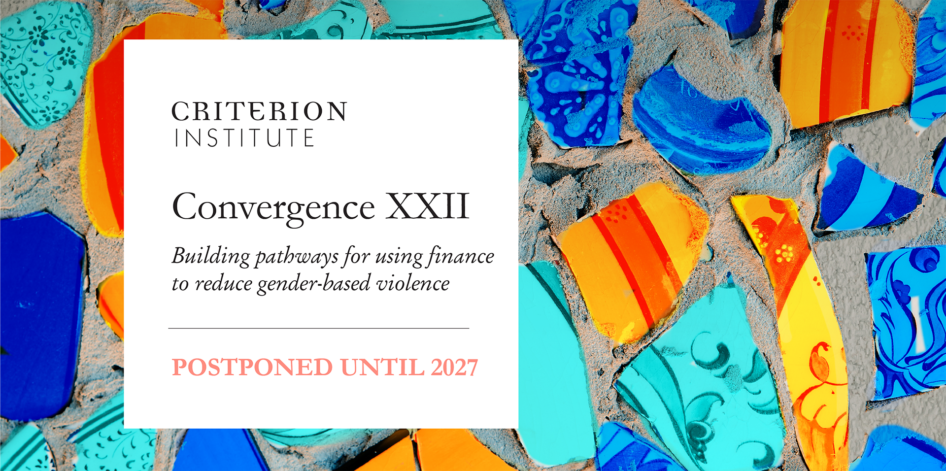 We have decided to postpone Convergence XXII: Financing the Reduction of Gender-Based Violence to 2027, aligning it with Criterion Institute’s 25th year.