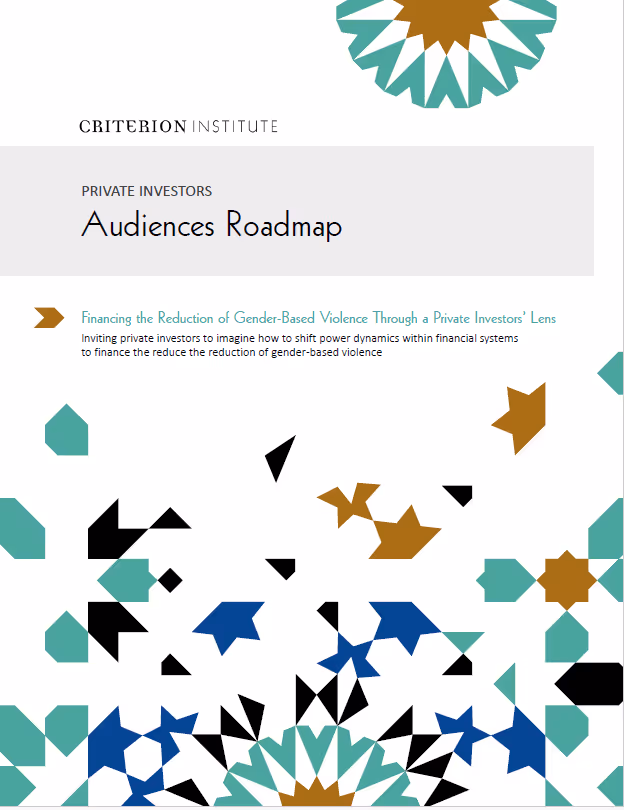 Private investors have the power and flexibility to move capital to address gender-based violence and/or flow resources towards survivors to shift how financial systems support the reduction of gender-based violence.